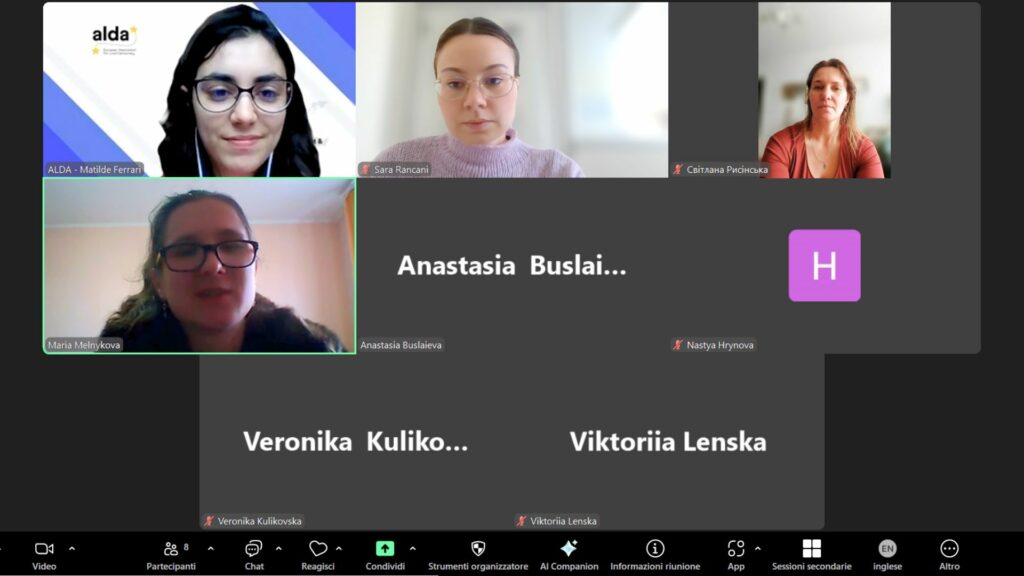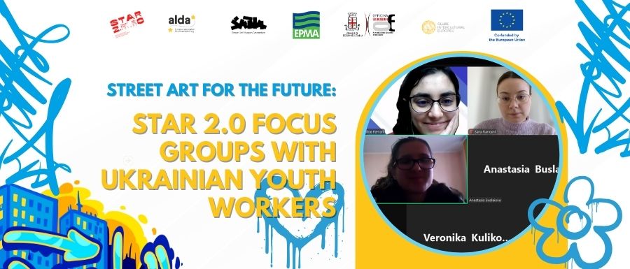 On March 13 and 14, 2025, ALDA hosted two online focus groups for the STAR 2.0 project, actively involving Ukrainian youth workers. These insightful sessions, facilitated by Matilde Ferrari, had a total of eight participants (three participants in the first session and five in the second). Participants provided essential feedback and valuable insights aimed at enhancing the upcoming training programme of STAR 2.0, which seeks to promote social inclusion and youth engagement through street art. By empowering youth workers to integrate street art into their practice, STAR 2.0 harnesses its potential for creative involvement and public dialogue, helping youth express themselves and strengthen their communities.